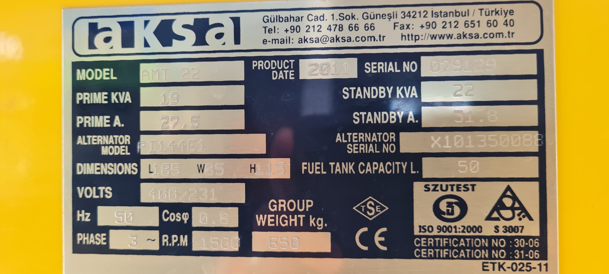 Güç :22kva