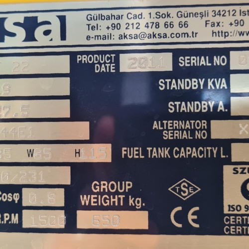 Jeneratör Markası  Aksa Jeneratör